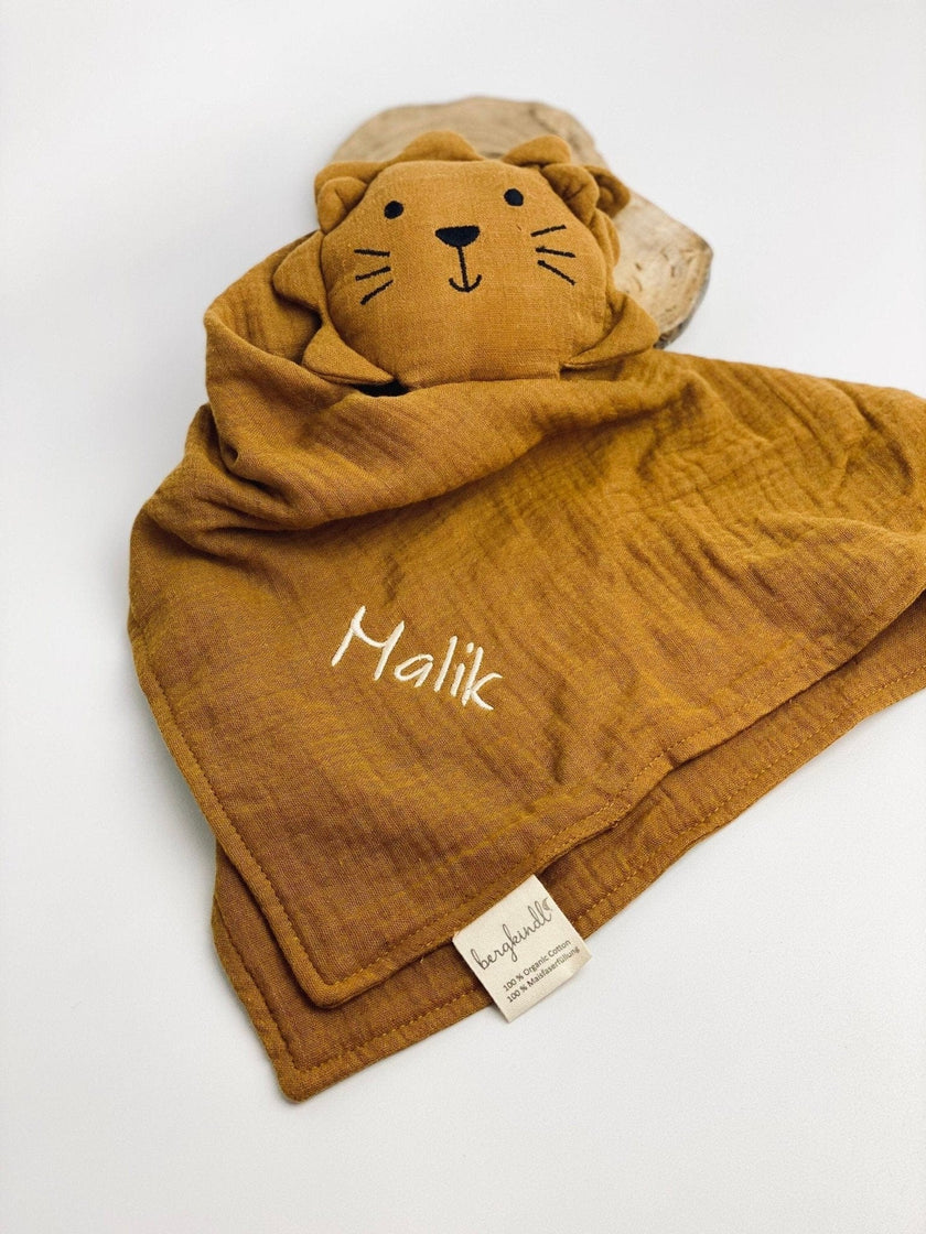 Schnuffeltuch Löwe Ocker aus Bio - Musselin - bergkindl