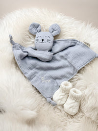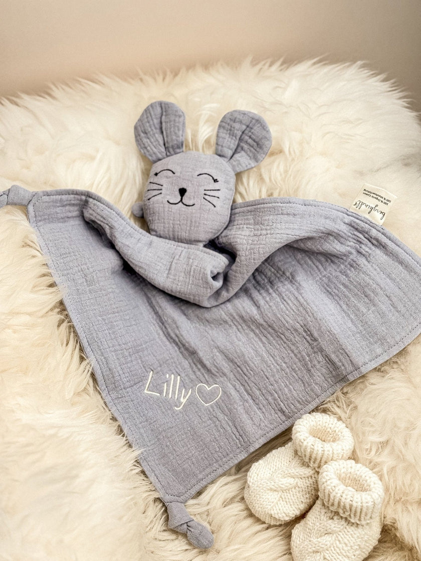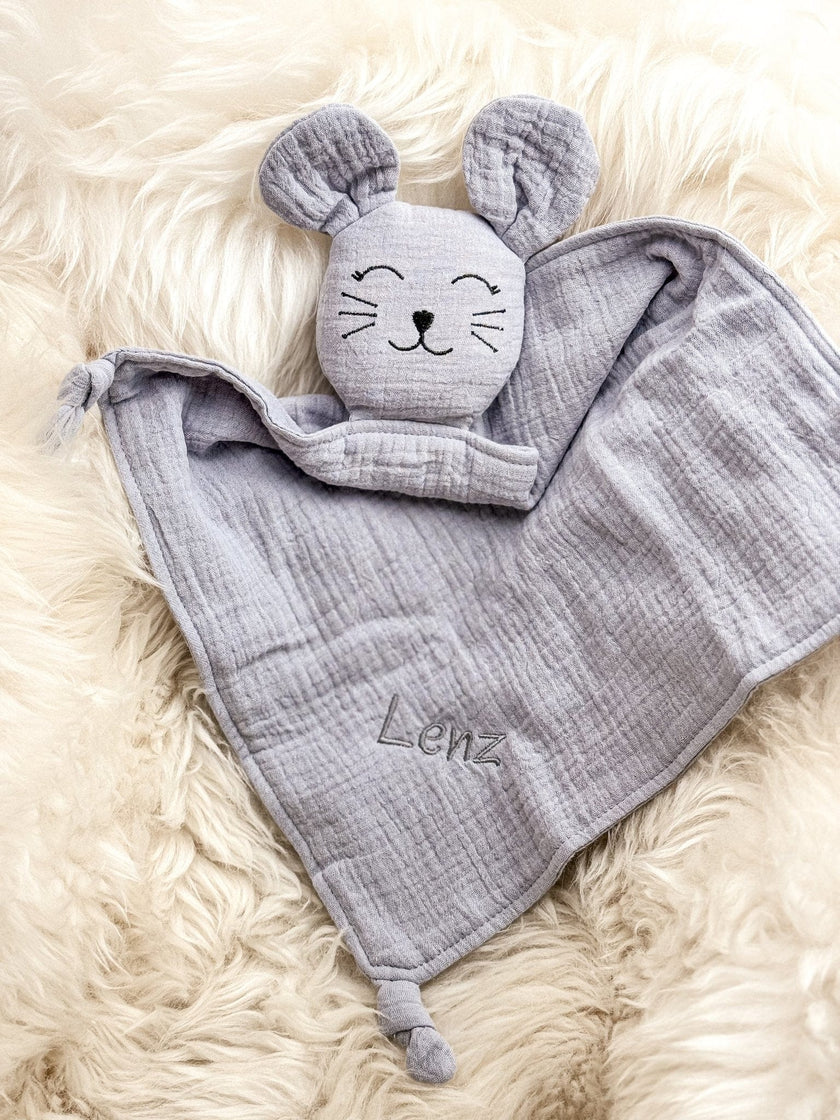 Das Schnuffeltuch Maus in der Farbe Grau ist der ideale Begleiter für Babys und Kleinkinder. Es bietet Geborgenheit und Trost. Dieses Schnuffeltuch ist nicht nur ein süßer Begleiter für dein Baby, sondern auch eine wunderbare Geschenkidee – ob zur Geburt, Taufe oder als Aufmerksamkeit für frischgebackene Eltern.